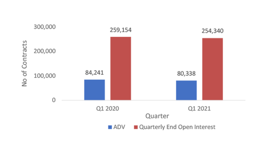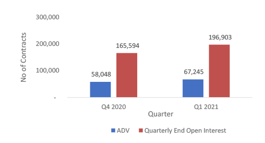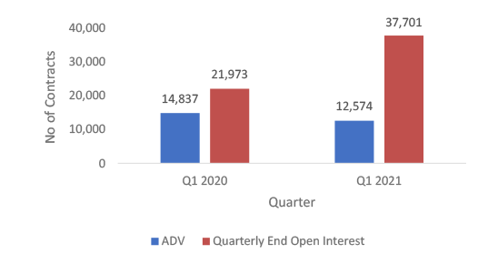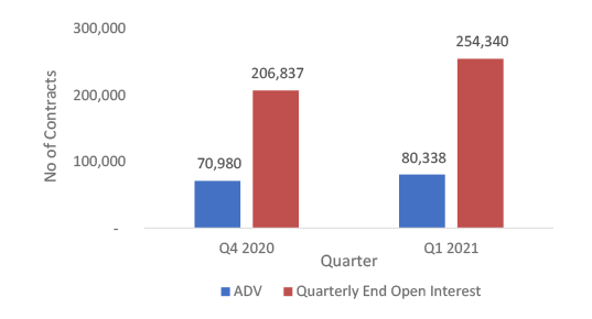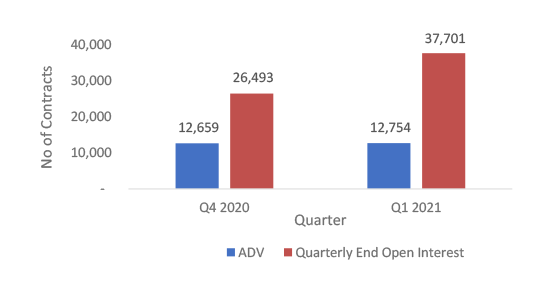 - The ADV increased marginally 0.75% from 12,659 contracts in Q4 2020 to 12,754 contracts in Q1 2021.