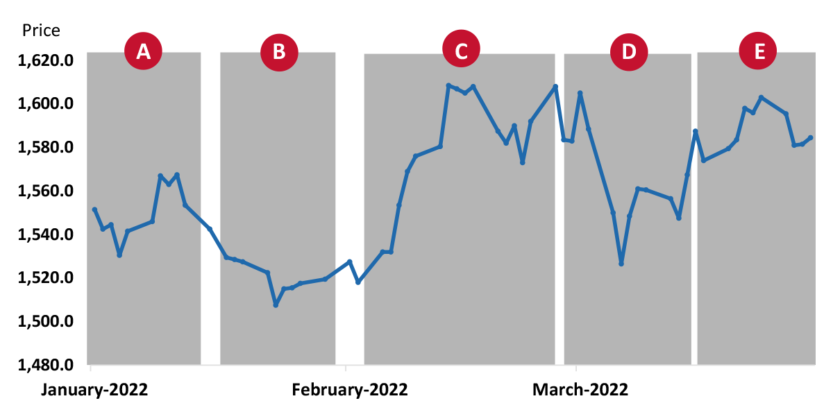 17 Mar 2022 to 31 Mar 2022 (-20.86%) Retreated on concerns about demand destruction from record high prices (e.g., expectations of shrinking stockpiles from 2ndbiggest grower Malaysia & escalating tensions in the Black Sea region) |