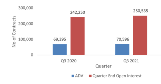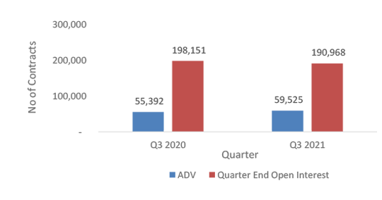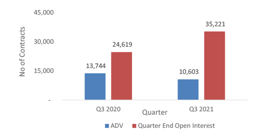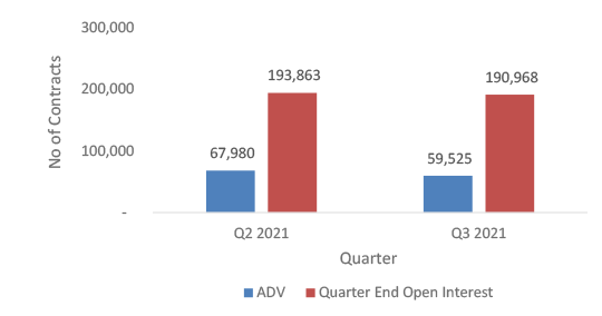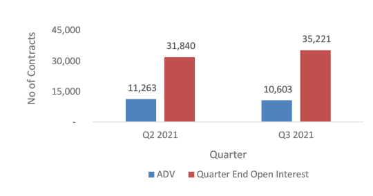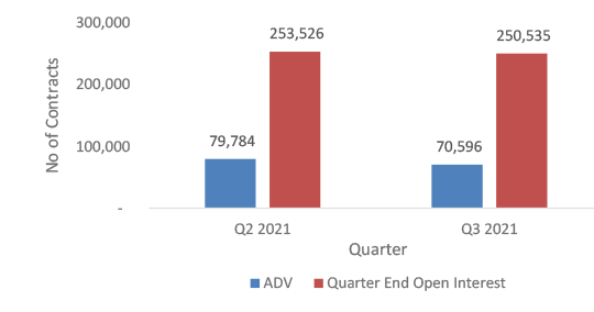 - In terms of ADV, the contracts traded dropped by 12.44% from 67,980 contracts in Q2 2021 to 59,525 contracts in Q3 2021.